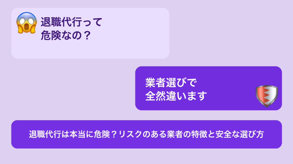 退職代行は危険なのか不安な方へ。実際にトラブルが起きたケース・危険な業者の見分け方・安全に利用するための業者選びのポイントを退職代行の経験者が具体的に解説します。 -
