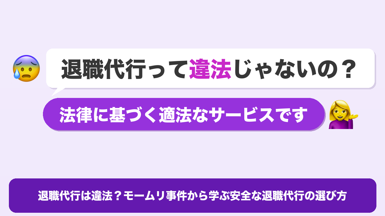 「退職代行って違法なの?」「モームリの事件を見て不安になった」そんな気持ちを抱えていませんか。