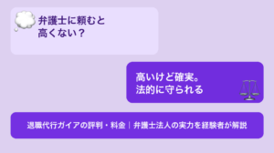 この記事では、弁護士法人みやびの料金・安全性・口コミ・メリット・デメリットを正直にまとめています。「トラブルなく確実に辞めたい」「未払い給与や残業代も請求したい」という方はぜひ最後まで読んでください。