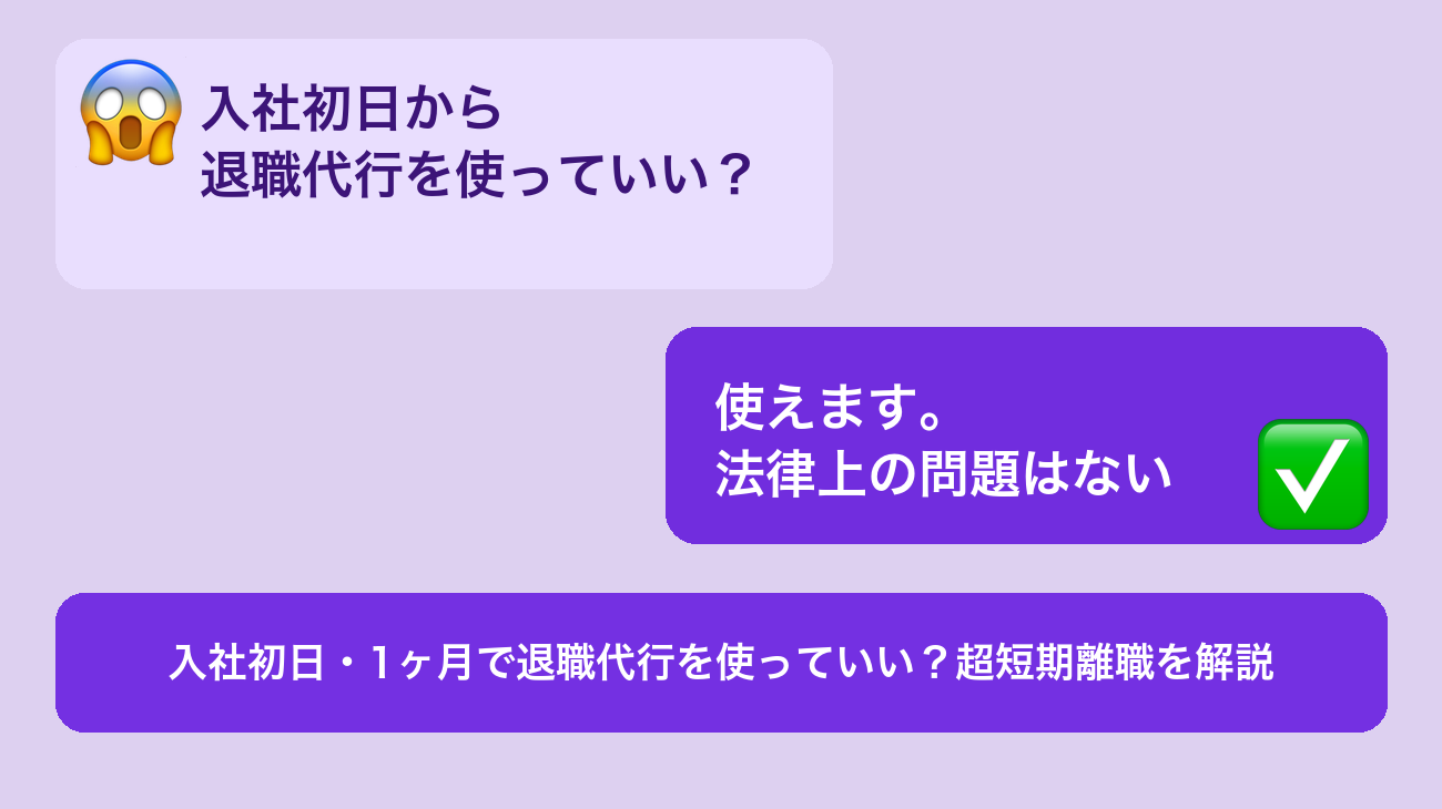 入社初日でも、1ヶ月でも、退職代行は使えます。この記事では、超短期離職の法的な問題・試用期間中の注意点・使った後の転職について、退職代行の経験者として正直にお伝えします。